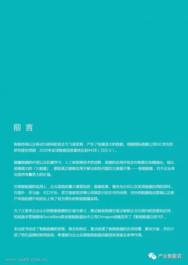 为了让更多企业认识到智能数据的价值与意义,推动智能数据驱动智能企业在国内的发展和应用,知名数字营销媒体 SocialBeta 发布了《智能数据如何高效驱动营销——智能数据白皮书》(以下简称「白皮书」)。