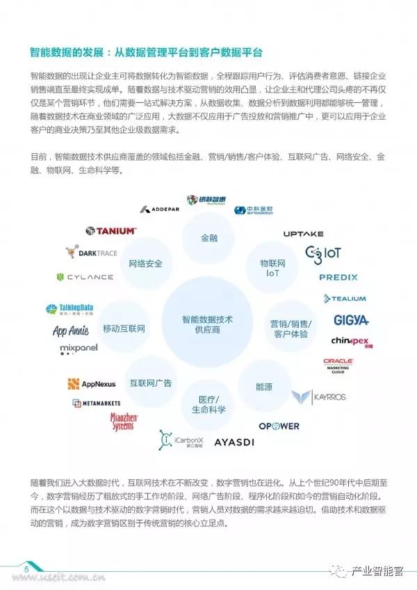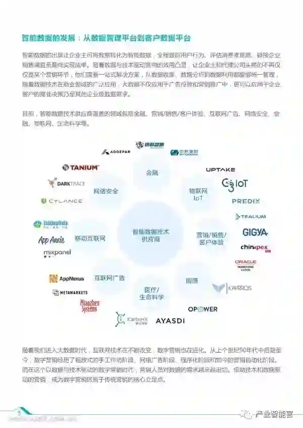 目前,智能数据技术供应商覆盖的领域包括金融、营销/销售/客户体验、互联网广告、网络安全、金融、物联网、生命科学等。