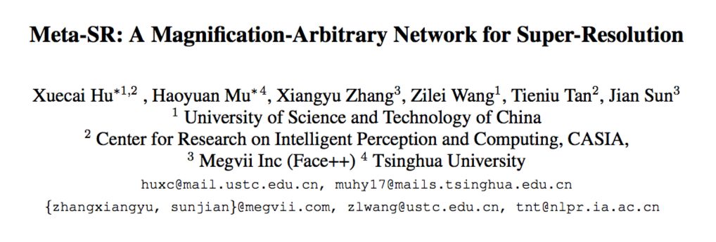 论文名称:Meta-SR: AMagnification-Arbitrary Network for Super-Resolution