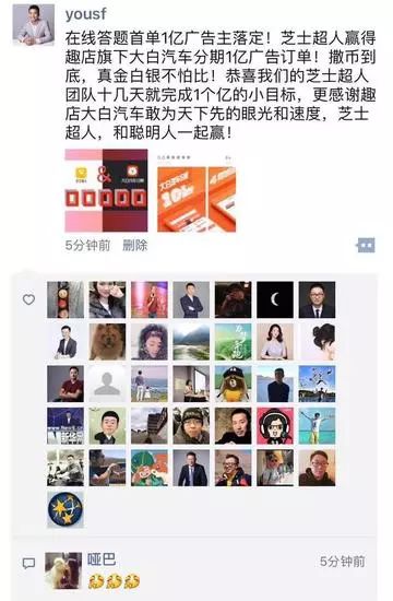 5、趣店旗下大白汽车分期砸一亿成映客芝士超人首位广告主