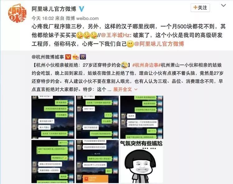 近日,认证为阿里巴巴官方文化账号的@阿里味儿官方微博表示,这个被拒绝的小伙是阿里巴巴的高级研发工程师。