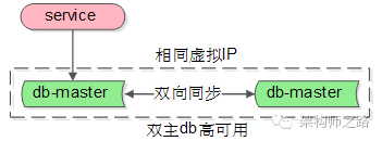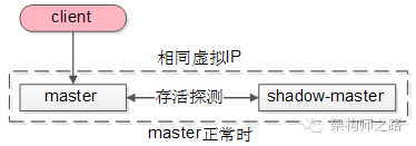 (3)异常时,虚IP漂移到另一个主库,shadow-master变成主库继续提供服务;
