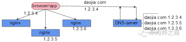 第一步的DNS解析,只能返回一个nginx外网IP么?
