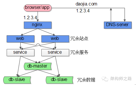 典型互联网高可用架构,哪些地方可能存在潜在单点?