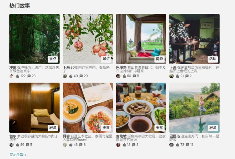 这些视频会自动链接到故事中出现的地方或民宿,被展示在 Airbnb 的官网上和 APP 中「旅行故事」的标签下,目前在灰度测试中。从这项新功能和名称可以看出,这是 Airbnb 强化旅游和内容社交的新动作。去年七月,Airbnb 上线了「故事」的功能,鼓励「在路上」的用户做一些积极的分享,同时期的版面也调整成了世界各地的风景和特色活动。(来源:36 氪)