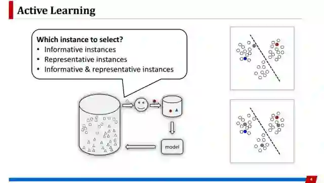 这个问题在过去几十年间,一直是主动学习这个方向研究最关注的一点。以往的方法大概可分为这两类:一类方法,倾向于选择最有信息的样本,例如,我去教你最不会的东西应该是对你最有帮助。另外一类方法,是倾向选择最有代表性的样本,希望选择的样本涵盖数据整体分布的信息。