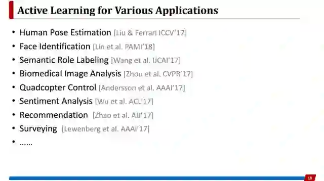 除此以外还有很多用主动学习解决不同应用问题的研究,这里不再一一介绍。以上就是对过去一年主动学习方面新出现的三个趋势的简单介绍和总结,谢谢大家。