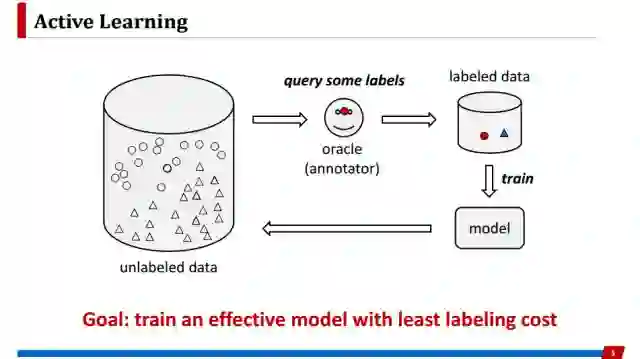 主动学习就是解决这个问题的重要手段。虽然有标记数据很少,但可以廉价获得非常多未标注的数据。在主动学习里有一个标注专家,我们可以迭代地从未标注数据里面挑选出一部分重要数据去标注,从而获得更多有标记数据。所以主动学习的目标是希望用最小标注代价获得最好的学习模型。