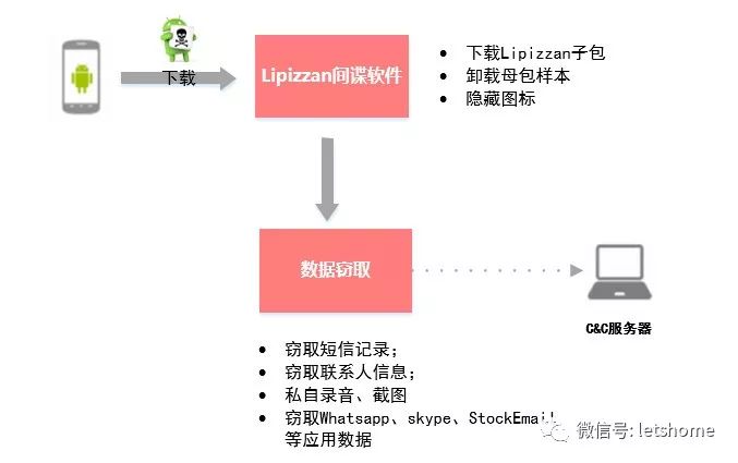 Lipizzan“间谍软件”的攻击的方式主要分为两个阶段: