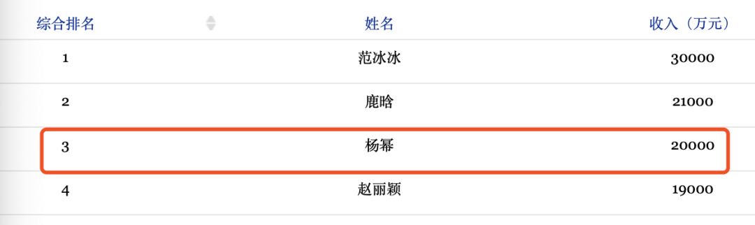 2017年的福布斯中国名人榜,杨幂和刘恺威双双进入百强榜。其中,杨幂收入达2亿元,综合排名榜单第3位;而刘恺威则以7500万元的收入排在第76位。二人合计年收入达2.75亿元。