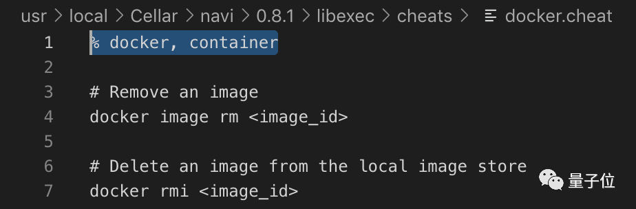 如果你通过Homebrew安装,速查表路径为/usr/local/Cellar/navi/0.8.1/libexec/cheat/。进入这个路径,添加一个后缀名为.cheat的文件。cheat文件的格式如下: