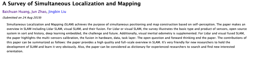 本论文主要讲述了3个大部分:激光slam,视觉slam和激光视觉等多传感器融合slam。