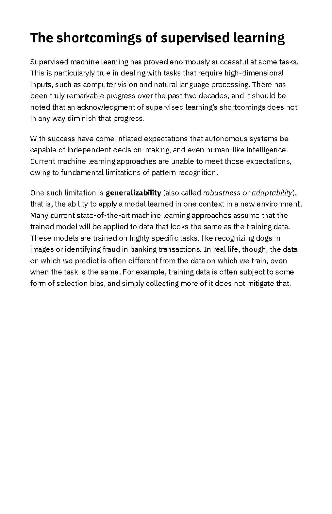 即使对于纯粹的预测系统(这是监督学习的强项),应用一些因果思维也会带来好处。根据因果关系的定义,它们是不变的,这意味着它们在不同的情况和环境中都是正确的。对于机器学习系统来说,这是一个非常理想的特性,在机器学习系统中,我们经常根据我们在训练中没有看到的数据进行预测;我们需要这些系统具有适应性和健壮性。