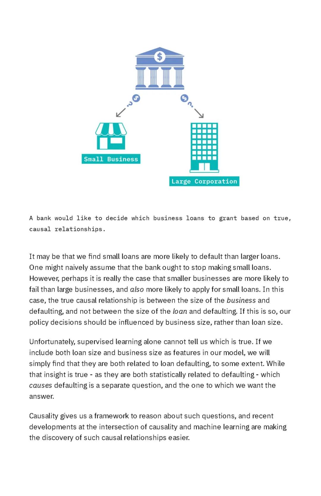 然而,仅仅基于预测的推理有一些基本的限制。例如,如果银行提高客户的信用额度会发生什么?这些问题不能用建立在先前观察到的数据上的相关模型来回答,因为它们涉及到客户选择的可能变化,作为对信用限额变化的反应。在很多情况下,我们的决策过程的结果是一种干预——一种改变世界的行动。正如我们将在本报告中展示的,纯粹相关的预测系统不具备在这种干预下进行推理的能力,因此容易产生偏差。对于干预下的数据决策,我们需要因果关系。