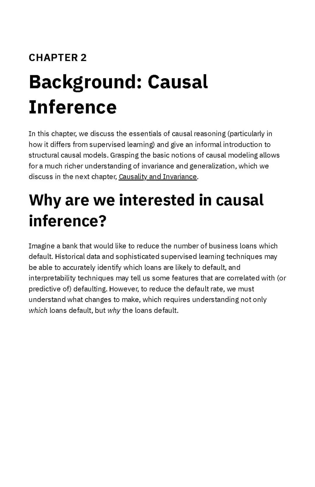 本书介绍了因果推理,因为它涉及很多数据科学和机器学习工作。我们引入因果图,着重于消除理解的概念障碍。然后我们利用这个理解来探索关于不变预测的最新想法,它给高维问题带来了因果图的一些好处。通过附带的原型,我们展示了即使是经典的机器学习问题,如图像分类,也可以从因果推理工具中受益。