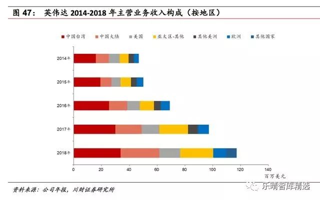 自2014年以来,英伟达营业收入不断增长,中国大陆以及中国台湾地区的主营业务收入增长占其主要部分,同时也由于亚太地区业务增长的助力因素,2018年英伟达营业收入达到了117亿美元。