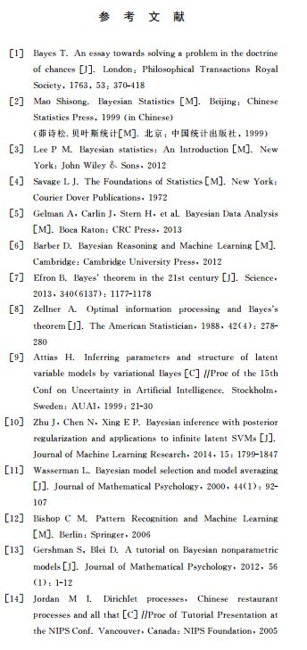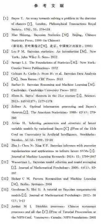 贝叶斯统计方法及其在机器学习领域的应用是贝叶斯学习的重要研究内容。因为贝叶斯理论的适应性和可扩展性使得贝叶斯学习得到广泛的应用.非参数贝叶斯方法和正则化贝叶斯方法极大地发展了贝叶斯理论,使其拥有更加强大的生命力。