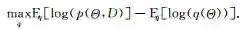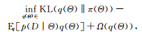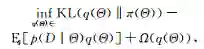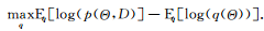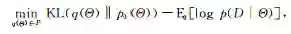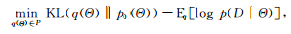 其中P为归一化的概率分布空间。可以证明,式(2)中的变分优化的最优解等价于式(1)中的后验推理的结果[8]。这种变分形式的贝叶斯定理具有两方面的重要意义:1)它为 变分贝叶斯方法[9](variational Bayes)提供了理论基础;2)提供了一个很好的框架 以便于引用后验约束,丰富贝叶斯模型的灵活性[10]。这两点在后面的章节中将具体阐述。