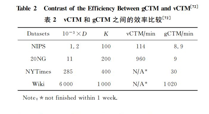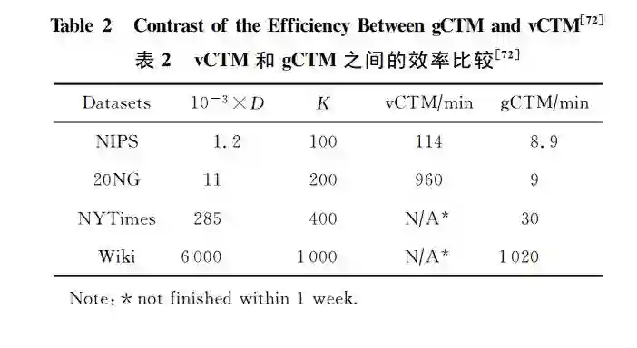 例2.以主题模型为例,经典的模型使用共轭狄利克雷先验,可以学习大规模的主题结构[70],但是,不能学习主题之间的关联关系。为此,使用非共轭 Logistic-Normal先验的关联主题模型(correlated topic model, CTM)[71]被提出。CTM的缺点是其推理算法比较困难,已有的算法只能处理几十个主题的图结构学习。为此,笔者课题组近期提出了CTM的分布式推理算法[72],可以处理大规模的数据集,学习上千个主题之间的图结构。该算法的部分结果如表2所示,其中D表示数据集大小,K表示主题个数。由表2可以看出分布式推理算法(即gCTM)极大地提高了模型可以承载的数据量(如600万的维基百科网页)和更多的主题个数(如1000)。这个项目的代码及更多信息已经公布,读者可以自行浏览[73]。