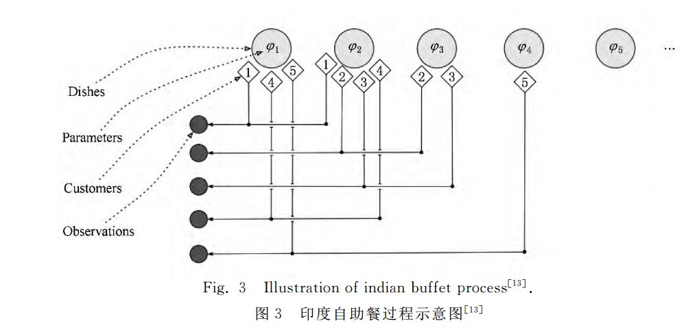 但是与中国餐馆过程的截棍过程不同的是棍的长度之和并不为1.印度自助餐过程也有其对应的采样方法和变分优化求解方法[16,30-31]。
