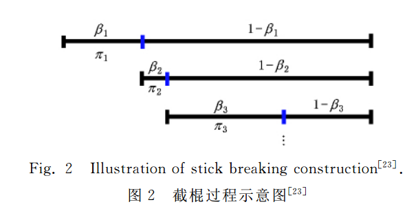 的比例长度。狄利克雷过程的截棍表述是变分推理的基础[22]。