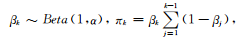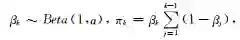另一种构造性的狄利克雷过程的表述是截棍过程(stickbreaking construction)[21].具体地说,将一根单位长度的棍,第k次切割都按照剩下的长度按照贝塔分布的随机变量,按比例切割: