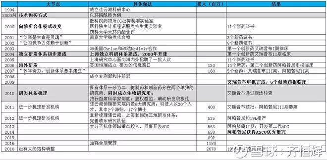 研发上,大体上有三个时间节点:2000年以前从外面买项目来开发,2004年在上海建成自己独立的研发体系,2010年重新梳理研发体系,正式把创新药研发单独分离出来,同时成立了生物药研究所,现在看时点基本上都踩对了,这一点得到同行的认可。比如在这篇$信达生物-B(01801)$ 俞则超的访谈中,涉及到恒瑞:“B: 除了信达,您最看好中国哪个医药公司?俞: 恒瑞。虽然我们有一些竞争关系,但我欣赏他们。他在合适的时间点所积累的资源,是我们目前没有的。而且他们愿意持续地投入研发,也非常好。”