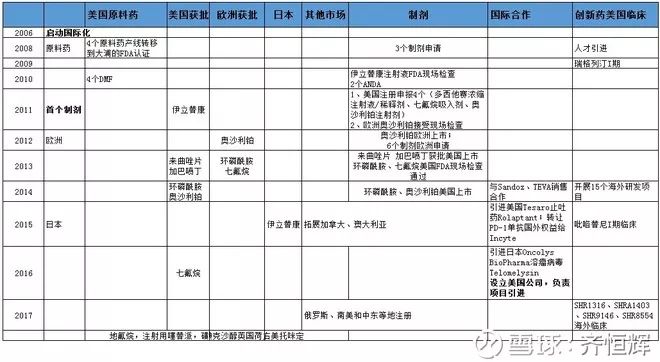 国际化上,2006年启动,这一年正是股改之年,48岁孙飘扬控股89%的天宇集团成恒瑞医药实际控制人;2011年之前主要做原料药,2011年首个制剂伊立替康在美国上市,2017年创新药海外临床初具规模;对于恒瑞来说国际化对开拓视野,倒逼规范的作用远远大于业绩的贡献;