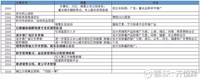 销售上,中国医药企业在销售上都有一些“你懂得”的操作,但恒瑞在背后的策略迭代和不断转变的做法也是能看到不断进步的;2005年粗分了肿瘤和麻醉线;2008年开始推广省区负责制;2013年从粗放的包干制向外企的过程管理转型;2016年开始提分线销售,2018年完成;