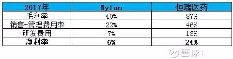 恒瑞医药的利润表结构和欧美市场公司的区别主要有两点,可以拿Mylan做个对比:第一,作为主要收入都是仿制药的企业,恒瑞的毛利率明显时过高的;第二,作为主要收入都是仿制药的企业,销售费用率明显过高;