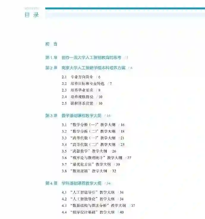 本培养方案侧重于人工智能领域源头创新能力、为企事业单位解决关键技术难题能力的培养。共分为6章,主要围绕专业方向、数学基础、学科基础教程、专业方向课程教学、数学拓展类课程展开