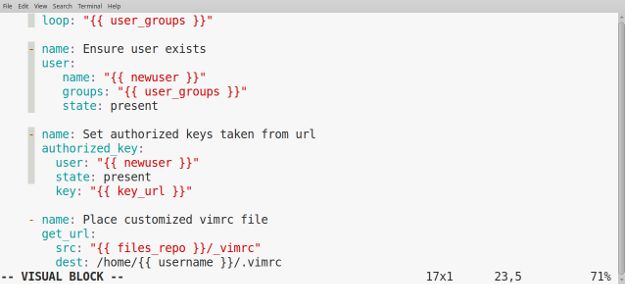 可视化块模式对于操作特定的表格数据文件非常有用,但它作为验证 Ansible 剧本文件缩进的工具也很有帮助。