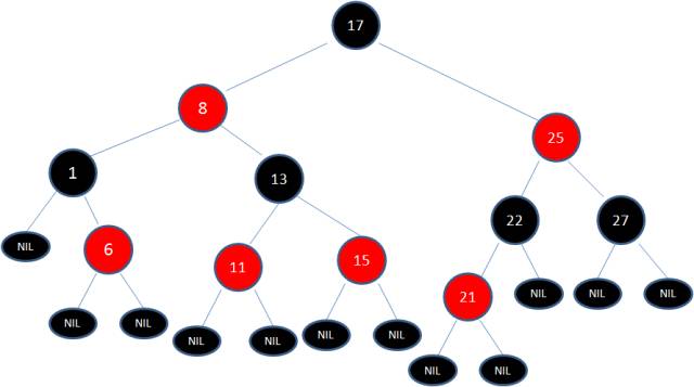 这样就结束了吗?并没有。因为其中两条路径(17 -> 8 -> 6 -> NIL)的黑色节点个数是4,其他路径的黑色节点个数是3,不符合规则5。