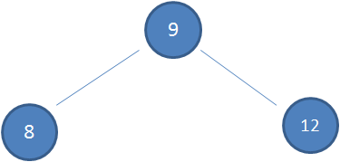 假设初始的二叉查找树只有三个节点,根节点值为9,左孩子值为8,右孩子值为12: