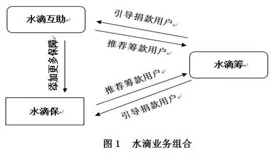 目前平台共有水滴互助、水滴筹、水滴保三部分业务,这三大业务组合的关系如下图所示: