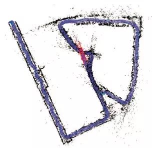 5、基于ORB-SLAM2算法在闭环检测不正确后得到的部分轨迹估计如图5所示。