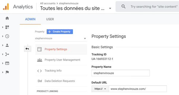 你需要指定一个Google Analytics ID。也许这看起来有些无聊,但我们需要重复在Disqus和Mailchimp上进行过的操作。你会被重定向到这个页面,该页面上可以找到TrackingID。在下面的截图上可以看出,我的是UA-166933112-1。将其复制到你的_config.yml文件中,就搞定了。