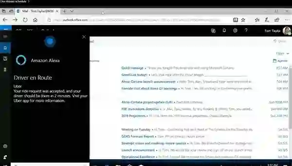 这一次,微软实地展示了二者的融合,首先是在亚马逊Echo智能音箱上唤出小娜,之后有用一台Windows 10 PC叫出了Alexa,甚至还故意让Alexa评价了一番小娜。