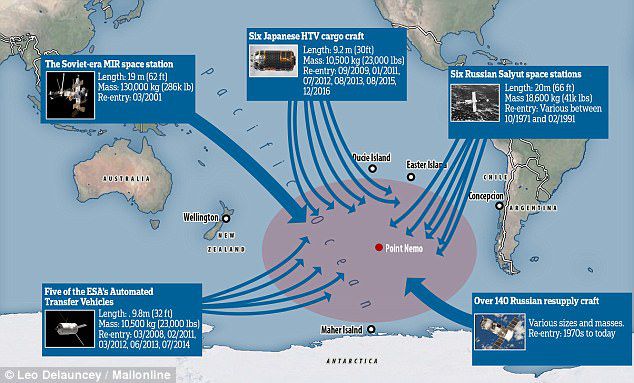 南太平洋是个巨大的航天器坟场 ©dailmail.co.uk