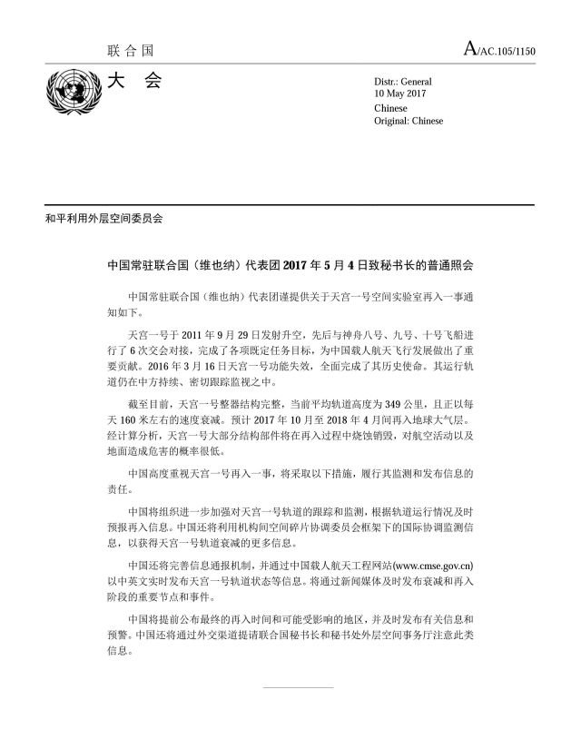 中国驻联合国(维也纳)代表团2017年5约4日致秘书长的普通照会