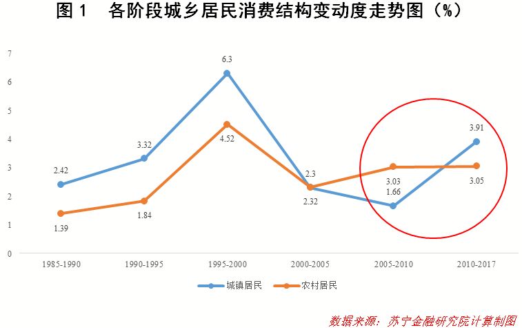 由于消费升级的重要标志之一是消费结构的优化提升,业内通常采用居民消费结构的变动度来表征居民消费升级的速度。