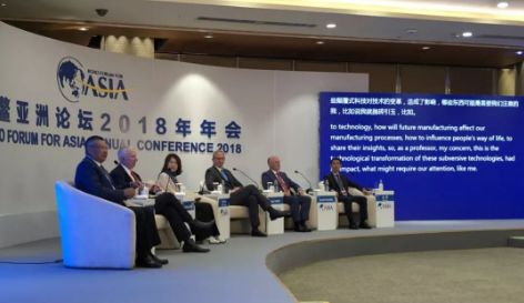 今天上午,在2018博鳌亚洲论坛分论坛“未来的生产”现场。