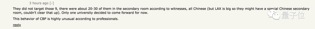 有知情人给出了更多信息,一位Reddit网友透露,美国海关此次不是针对这9位中国留学生,在这次检查中,大约20-30人都被暂时扣押了。