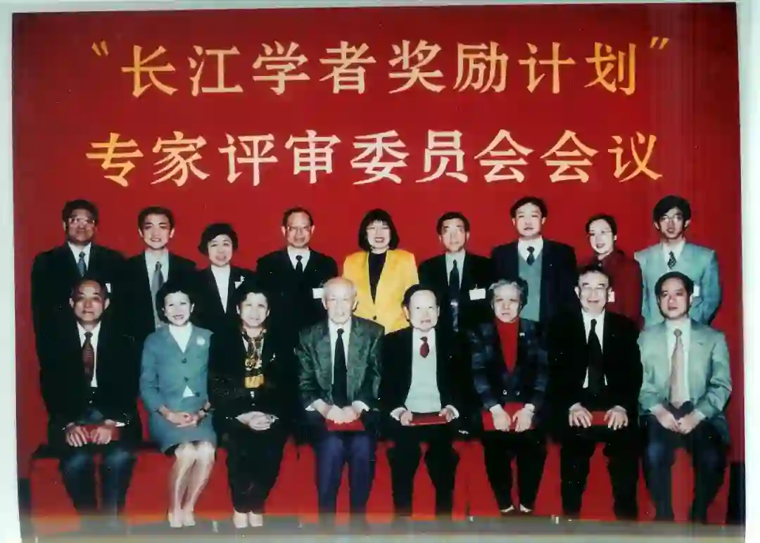 教育部“长江学者奖励计划”评审会(1998),前排右起:韩啓德、张存浩、韦钰、杨振宁、朱光亚、陈至立、周凯旋、孙枢。