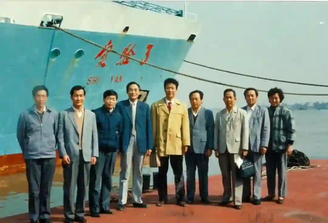 1988年到广州中国科学院南海海洋研究所讨论工作并访问科考船“实验”3号,左二:范时清、左三:孙玉科(所长)、左五:沈远超、右一:祁凤茹。
