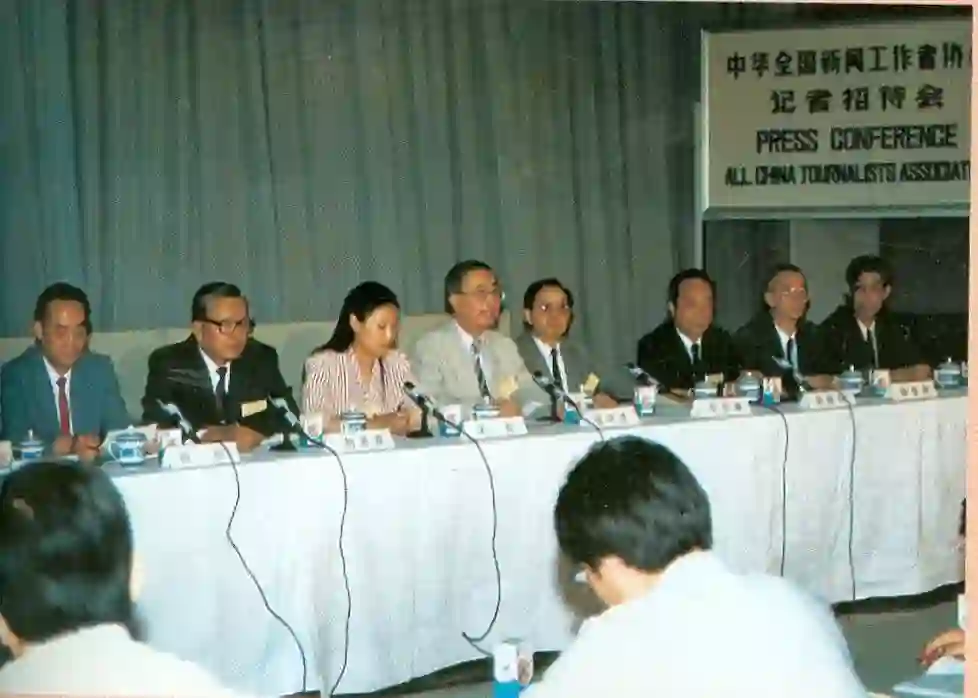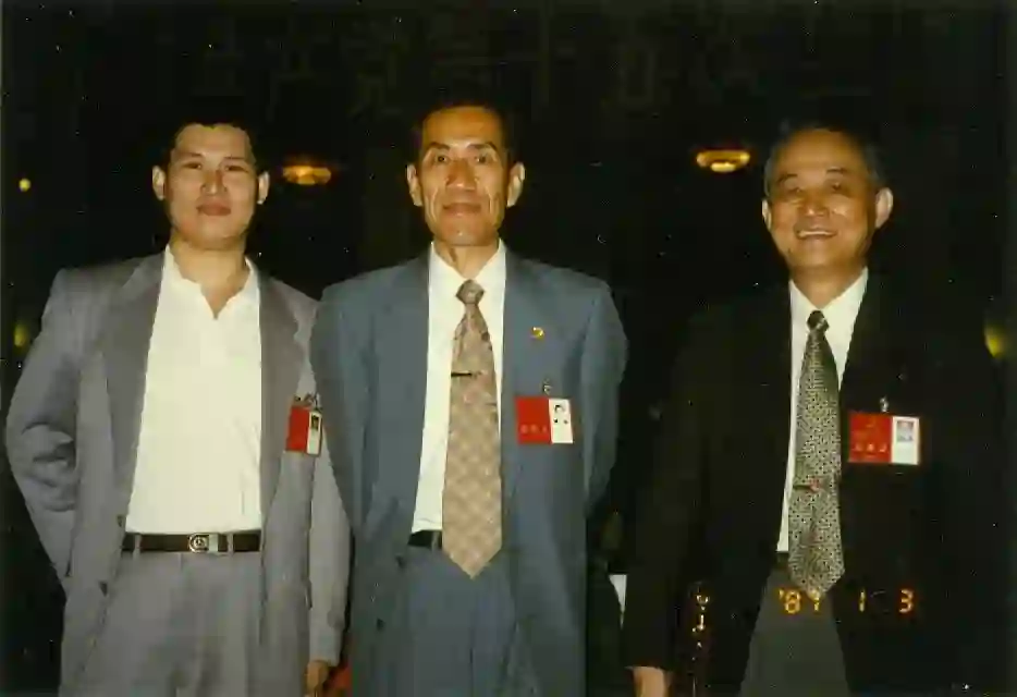 在中国共产党召开十五大期间,左起:詹文龙、陈宜瑜、孙枢。