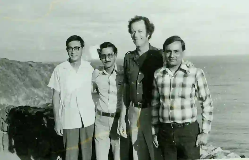 在印度参加国际磷块岩会议(1981),右二:Sheldon(美国)、左一:孙枢。