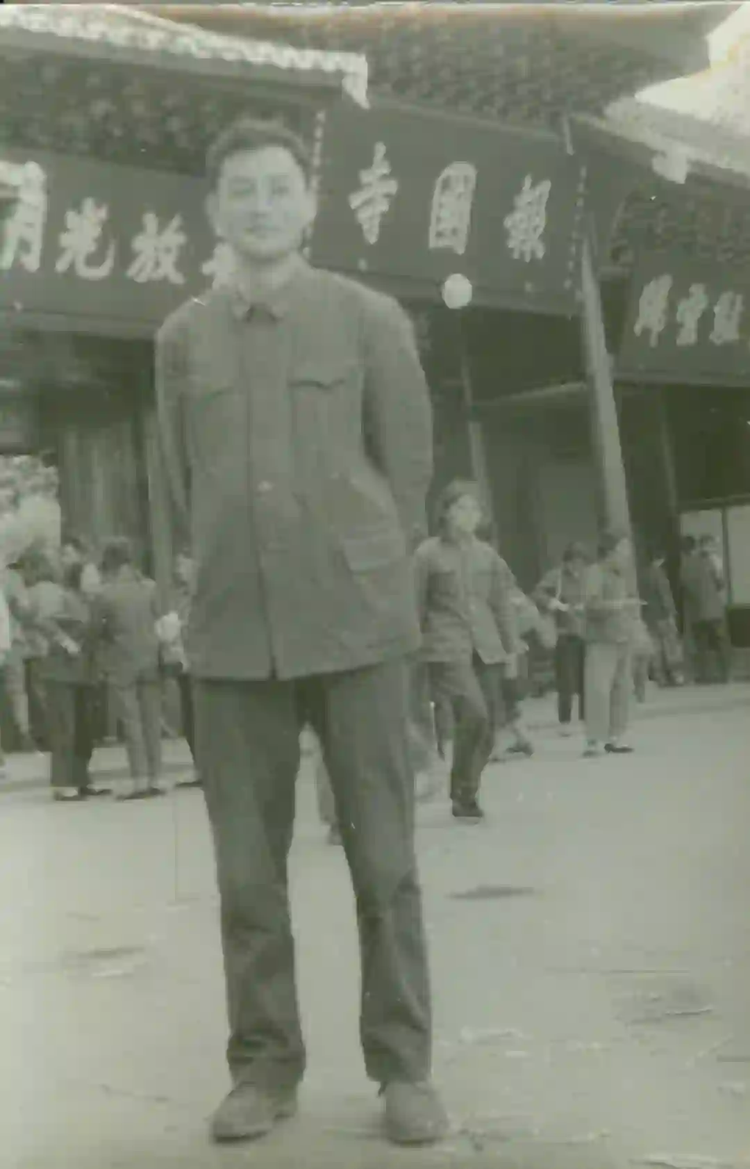 1974-1975年同陈其英、陈志明一同考察四川、云南、广西等地磷块岩和沉积铁矿,在峨眉山下留影。