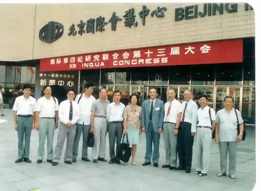INQUA大会组委会秘书长孙枢(右五)和副秘书长安芷生(左六)欢迎部分国内代表