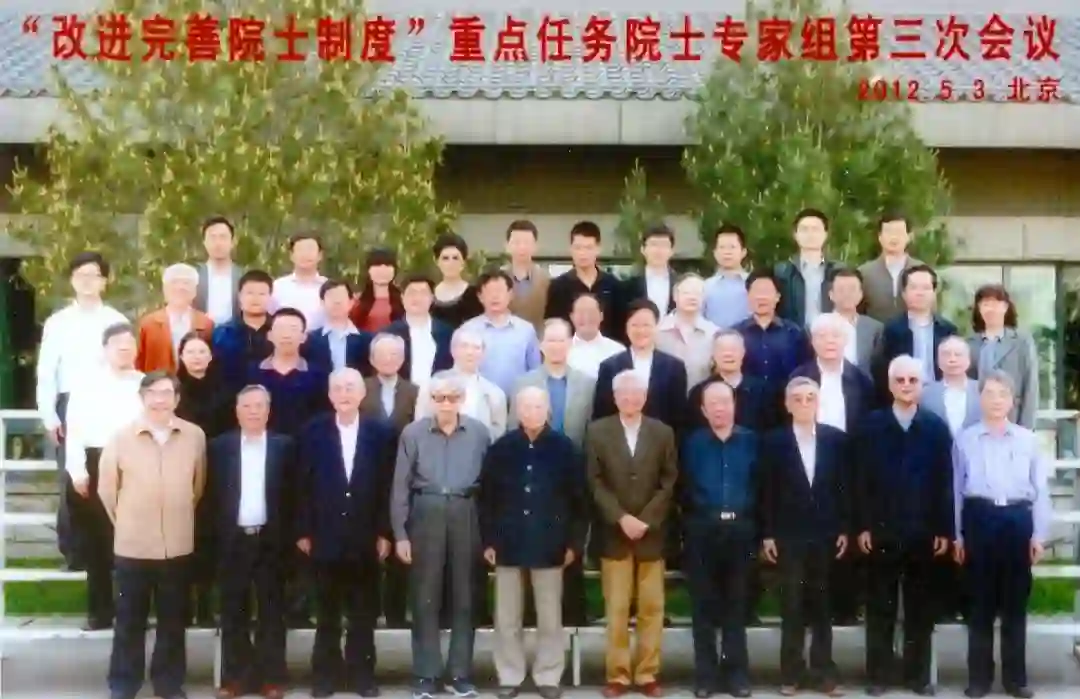 “改进完善院士制度”重点任务专家组会议(2012,北京),中国科学院和中国工程院部分有关领导和院士以及两院有关部门同志合影。